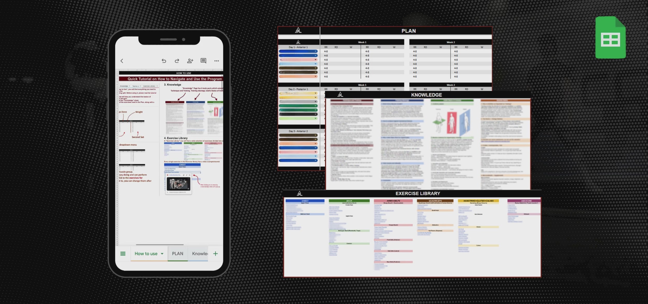 Everything you need to finally make visible progress in the gym in one document. All in one tool to track your progress, learn why and how, and custom made science based programs with exercise video tutorials!